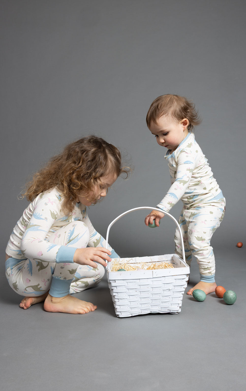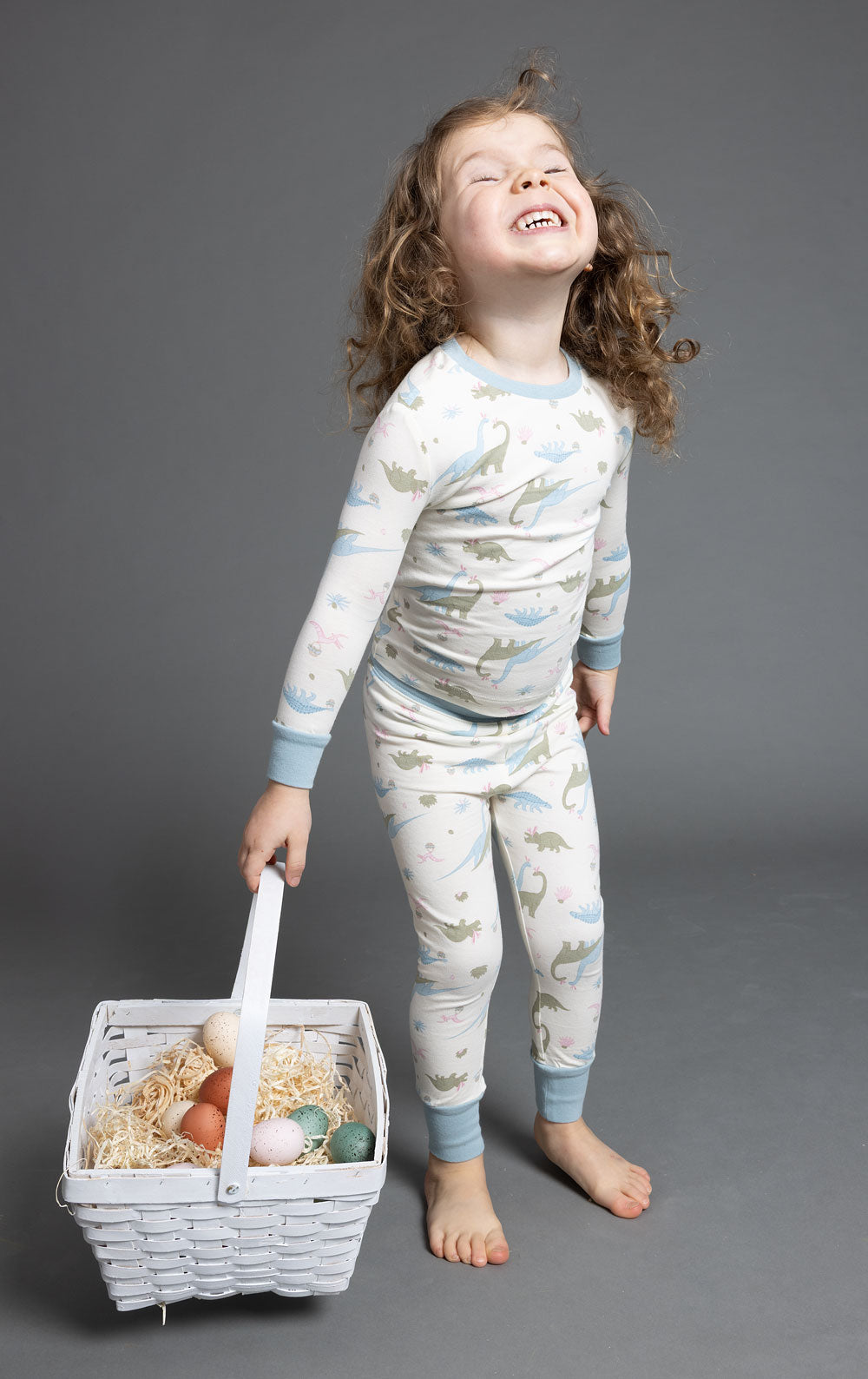 A hop and a roar for bedtime. It doesn’t get cuter than the Dino Bunnies Toddler Pajamas. Boasting a snug fit, this two-piece set includes a long sleeve, crew neck shirt and legging pants. Detailed with ribbed cuffs, these pajamas are made from a super soft, perfectly stretchy jersey material that is gentle on the skin.