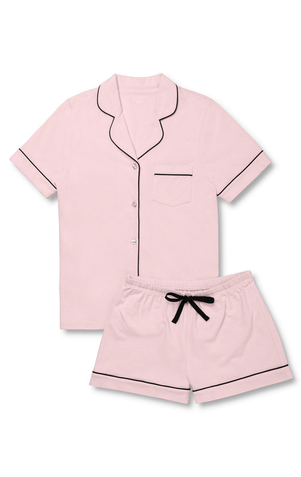 The best match for a good night’s rest? The Solid Jersey Short Set. Featuring classic style and modern comfort, these pajamas include a button-front, notched collar, chest pocket, short sleeve shirt and elastic waistband, drawstring shorts. Complete with designer details like contrast piping, this set is sure to be an all-time favorite for years to come.