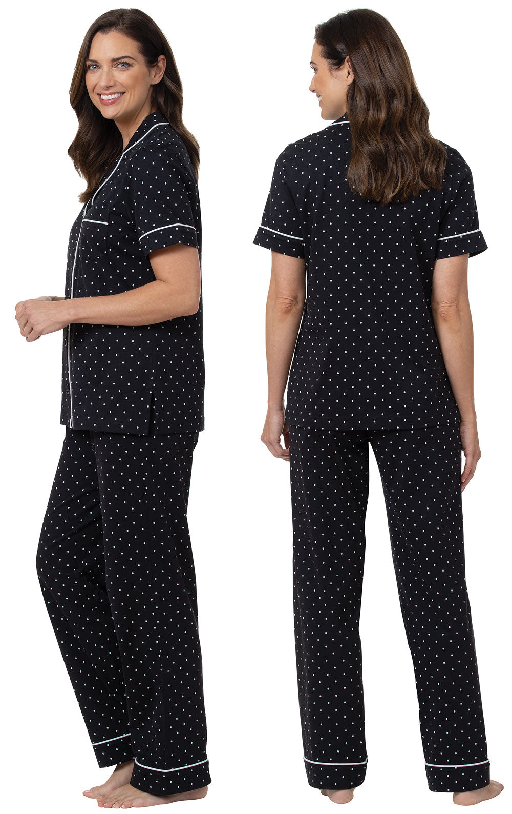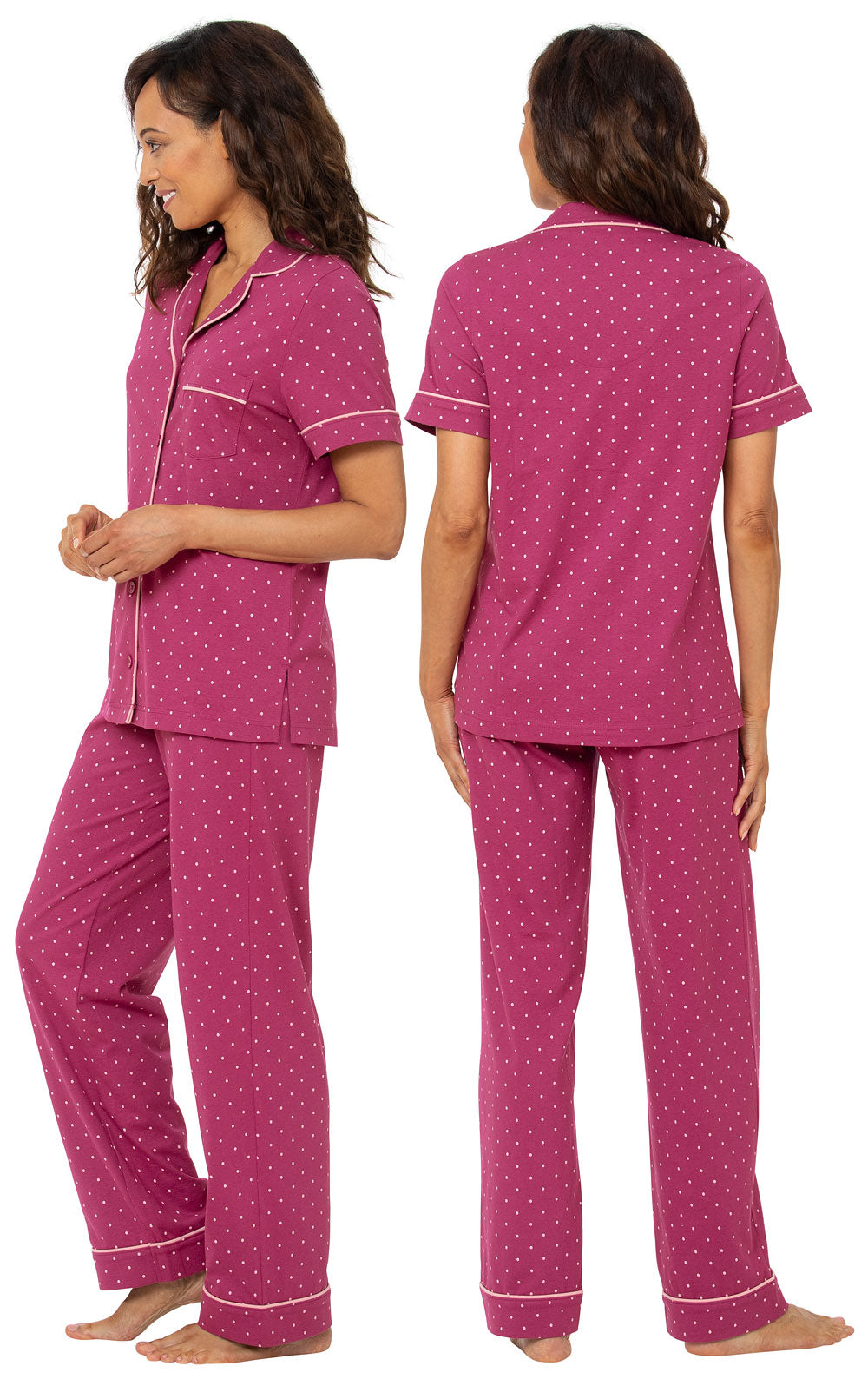 With oh-so-soft cotton, the pretty Classic Polka-Dot Short Sleeve Button-Front Pajamas make bedtime better than ever. Made with a timeless design, this set includes short sleeves, buttons, a notched collar, and chest pocket as well as full-length, elastic, drawstring pants. Pajamas like these inspire amazing relaxation and the most refreshing sleep.
