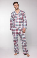 Hibernation Plaid Button-Front Men's Pajamas - Couples